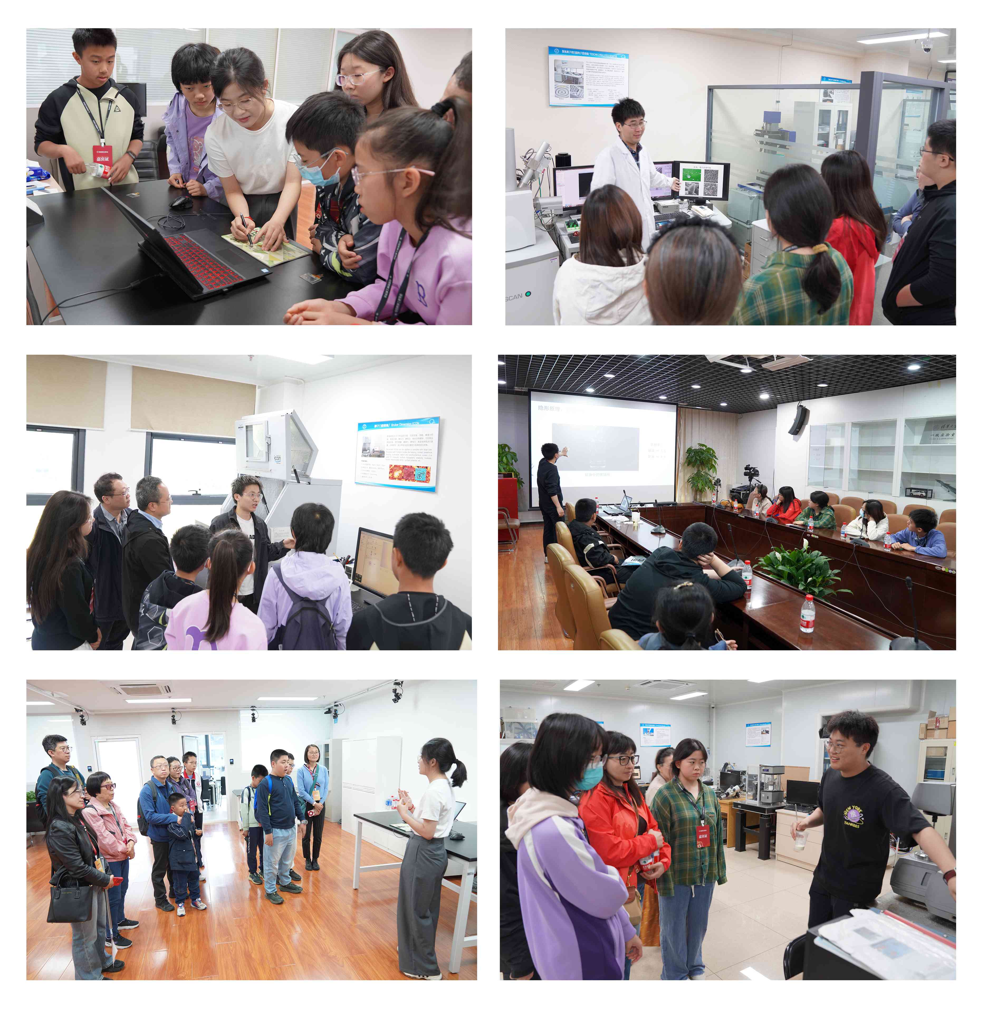 實驗室參觀與實驗演示環(huán)節(jié),青少年和家長們跟隨實驗室專家深入多個科研場景:在掃描電鏡及表面形貌分析實驗室,一起探索荷葉的表面結(jié)構(gòu)、昆蟲的復(fù)眼等微觀世界;在表面分析測試實驗室,學(xué)習(xí)如何通過原子力顯微鏡探索生物分子與材料的相互作用;在磨損實驗室,親身體驗“剪切稠化液體”的硬化現(xiàn)象,并通過超滑實驗探討“螞蟻能否推動大象”的力學(xué)原理;在教學(xué)平臺實驗室,學(xué)習(xí)手機(jī)屏工作原理;聽專家詳細(xì)講解“神秘的隱身技術(shù)”等。參與活動的學(xué)會會員和青少年表示,專家生動的講解和實際演示,讓抽象知識“看得見、摸得著”,不僅拓寬了知識視野,更點燃了探索科學(xué)知識的熱情。